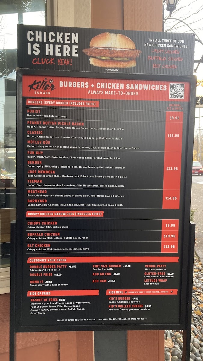 Welcome to Killer Burger Sellwood, a gem nestled in the heart of Portland, Oregon. This hamburger haven boasts a menu brimming with innovative burger creations that tantalize the taste buds. The Motlëy Qüe Bacon, with its rich BBQ sauce and crispy onions, complements the classic bacon burger, which features crispy bacon and fresh toppings. For adventurous eaters, the Peanut Butter Pickle Bacon is an unexpected delight, merging sweet and savory flavors.